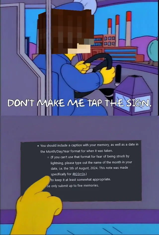- (If you can't use that format for fear of being struck by lightning, please type out the name of the month in your date, i.e. the 5th of August, 2024. This note was made specifically for @D3rr3x.)
