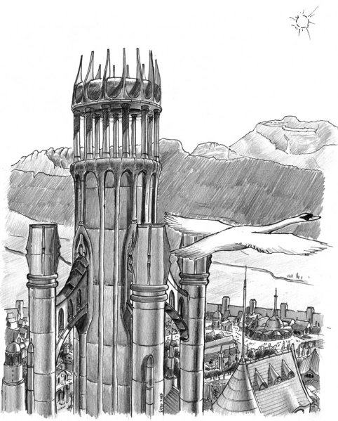 The above hear is an interpretation by Eric Faure-Brac. It shows what in my opinion, Gondolin would have looked like on the inside.